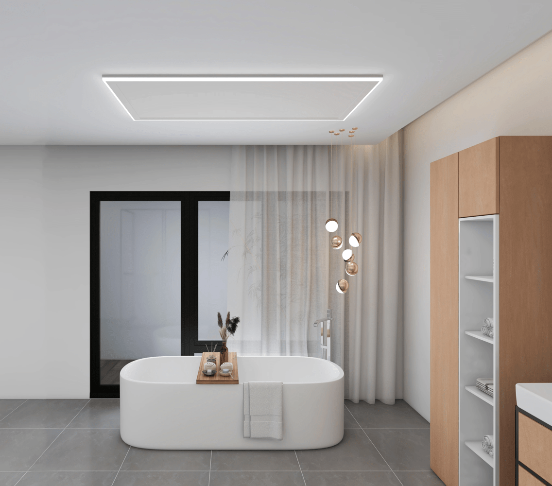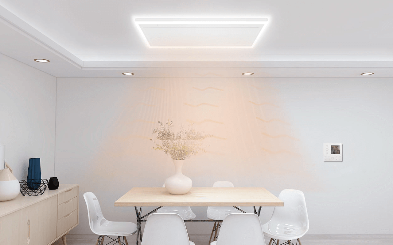 Dit VH infrarood paneel is de ideale oplossing voor aan het plafond. Combineer verwarming en sfeerverlichting.